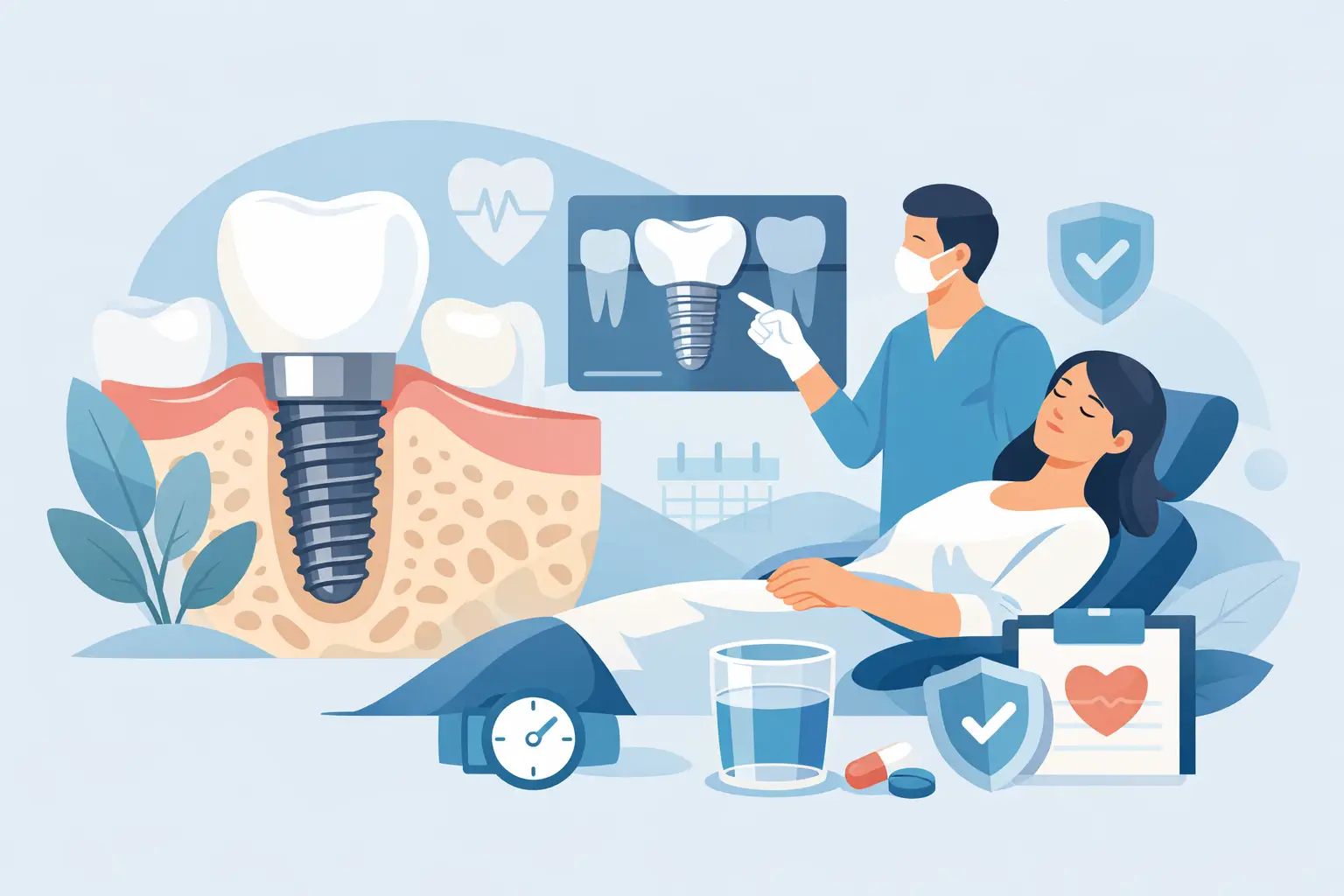Primele 72 de ore după intervenție pot influența mai mult decât pare confortul, inflamația și felul în care țesuturile încep să se închidă. Un protocol de recuperare după inserare implant nu înseamnă doar să aștepți să treacă durerea, ci să reduci presiunea pe zona operată, să menții o igienă controlată și să ajuți osul și gingia să intre într-un proces de vindecare cât mai stabil.